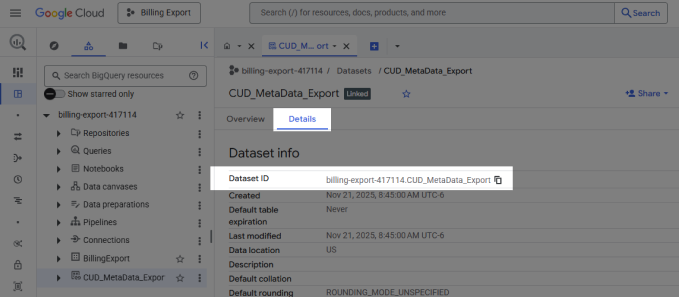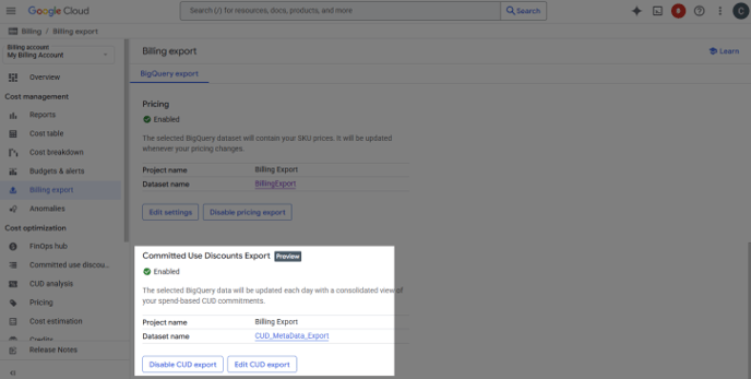 Note: To streamline the onboarding process, it's essential that the Detailed usage cost and Pricing tables are active within BigQuery. If you're uncertain about their status, please refer to this help article for detailed instructions.