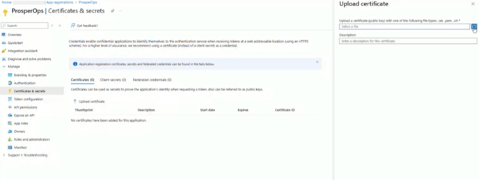 Add the ProsperOps Certificate to the ProsperOps Application in Your Azure Portal