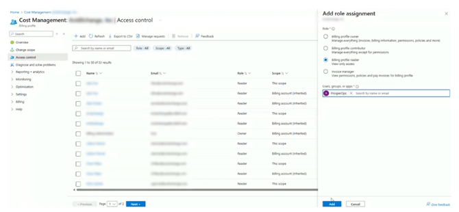- Change the scope to be in the Billing Profile that corresponds to the ID provided in the initial step on the ProsperOps Console