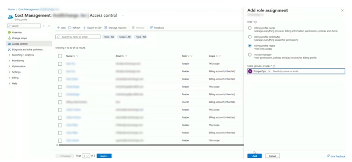 - Select Billing profile reader role