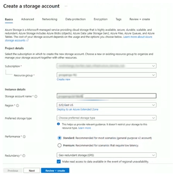 - Create a storage account in the Azure Portal