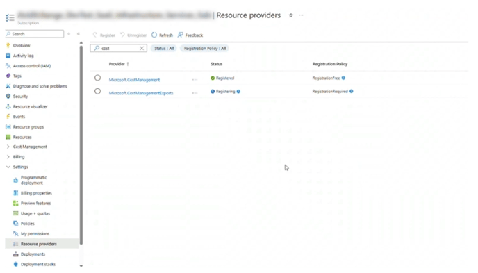 - Select Microsoft.BillingBenefits and Microsoft.CostManagementExports from the list of providers
